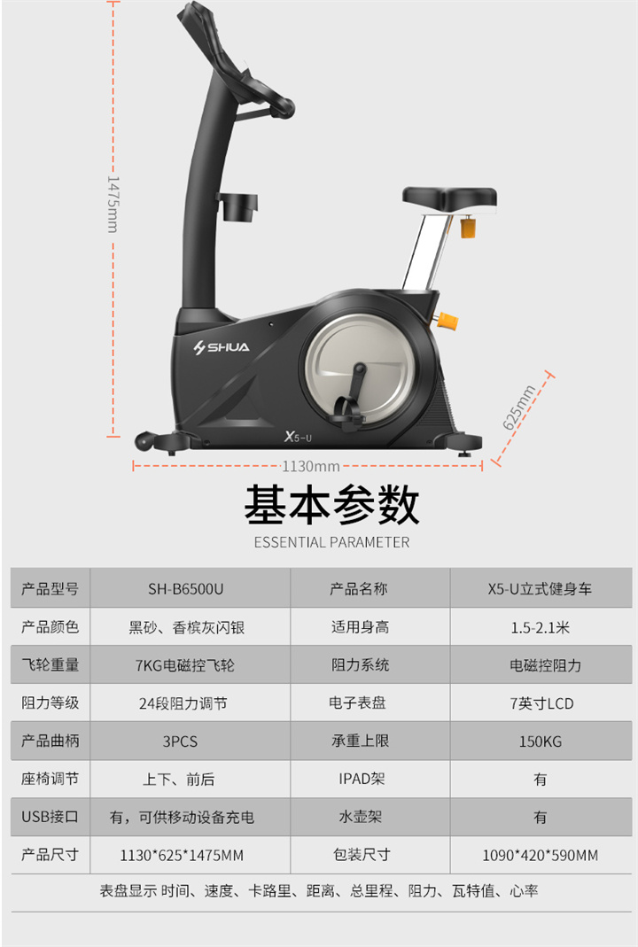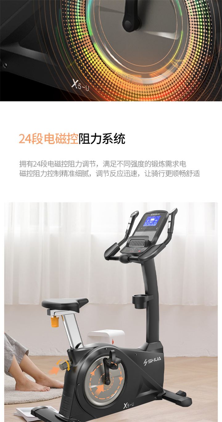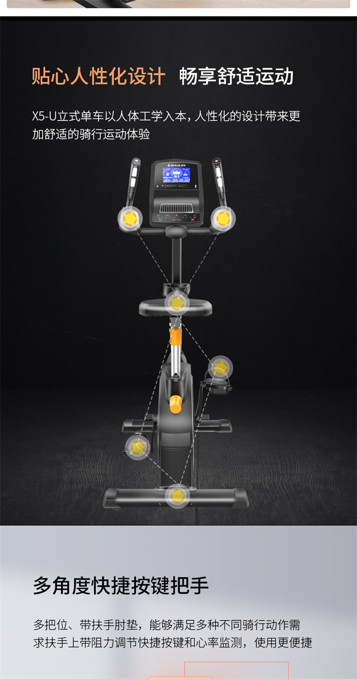 舒華立式商用健身車SH-B9100U(V10)觸屏版擁有超大顯示和操作屏幕, 可以任意設(shè)置阻力、時(shí)間和距離等參數(shù),還可以即時(shí)顯示心跳和轉(zhuǎn)速等數(shù)據(jù),同時(shí),SH-B9100U提供多項(xiàng)科學(xué)運(yùn)動(dòng)處方,更輕松掌握運(yùn)動(dòng)節(jié)奏。