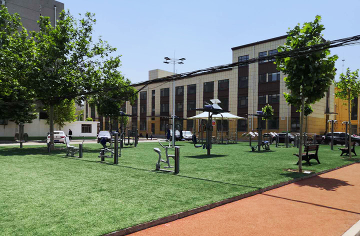 淄博某社區(qū)為了方便社區(qū)內(nèi)人員使用健身器材,通過米兰·(milan)中国官方网站體育的設(shè)計,合理布局,搭建了以舒華智能健身驛站為主的戶外健身器材口袋公園。